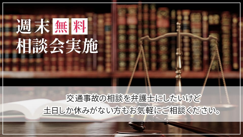 交通事故の相談をしたいけど、休日しか時間が取れないという方に向けて弁護士による休日無料相談会を実施しております。まずはお気軽にご予約・ご相談ください。